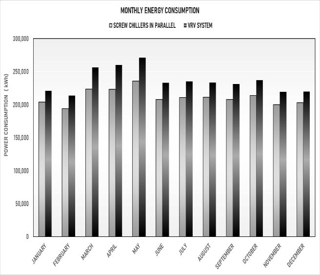 thantheVRFsystemfortheoperationaltime.Thissignificant costsavingsisamajorfactorthatallowsustosaythatthe chilled water system is a better alternative for the hotel project.