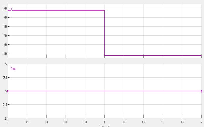 The Mat lab simulation is thus designed of an input for the PV panel which is of irradiation and temperature. Based upon the Voltage and Current from