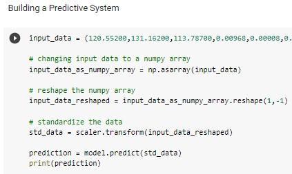 Detection of parkinson disease: Using the frequency rate of vocal data our model predicts whether a user is affectedbyparkinsondiseaseornot.