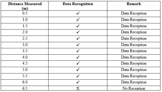 The permissible operation distance of the whole system working was also tested (Table 2) and the result obtained is shown appropriately.