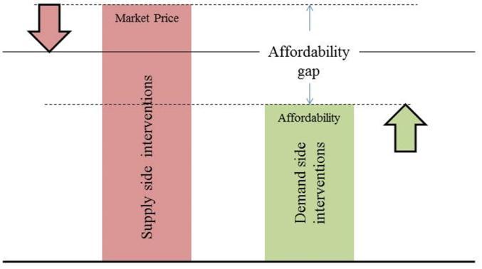 Increasingtheaffordabilityisademand-sideinterventionand increasing the availability of options is a supply-side intervention. However, there isa gap between supplyside anddemandside