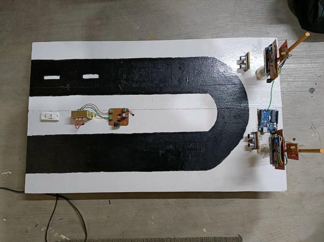 The objective of this initiative is to decrease the numberofcollisionsthatoccuronwindingandhillyroads. This is done by mounting an LED light and an Ultrasonic sensoronthesideoftheroad,onebeforethebendandone after. TheUltrasonicsensor detectsa vehicleapproaching from one endof thecurve, andtheLEDlightlightson the otherside,settingoffbuzzersandflashing"VehicleAhead" onLEDdisplays.Thiswillallowustosaveagreatnumberof lives.