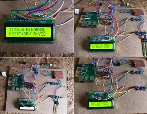 The insertion of moisture sensor in the soil, it predicts the percentage of moisture and water content present in the soil. The ADC is used in connecting the soil moisture sensortotheraspberrypiinwhichtheoutputispresented in digital format whether it is WET or DRY displayed on LCD. The sensor consists of potentiometer to set the desired moisture threshold value, if the values measured by sensor is more than the threshold then the digital output goes high an LED indicates the output. Similarly, when it is less than the threshold value then the output remainslow.