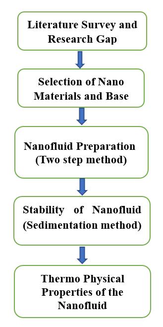 TheCuOselectedasnanoparticles andEGasbasefluids were selected based on the literature reviews and gap identified. The size of the CuO nano pparticles is 20 nano meterandinsphericalinshapethemethodologyfollowedfor thepreparationandstabilitycheckingofthenanofluidshown intheFigure1.