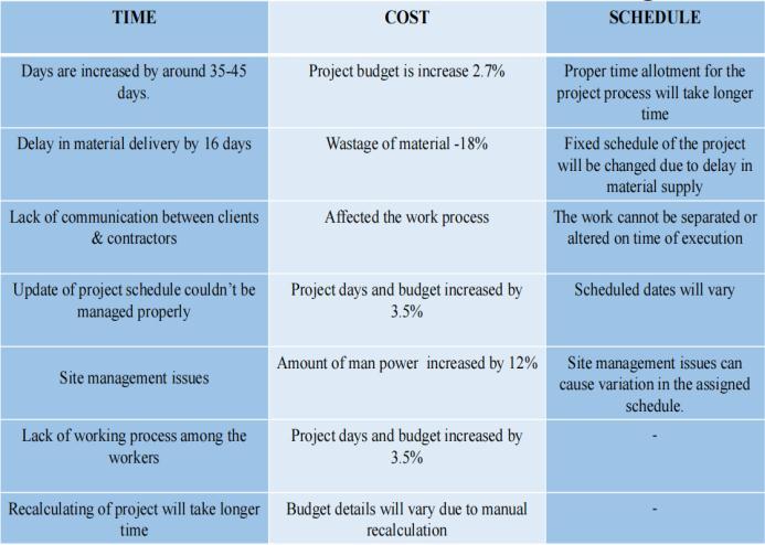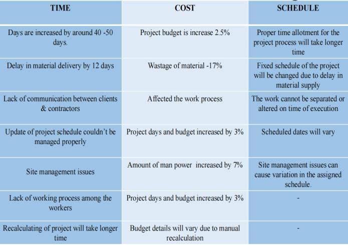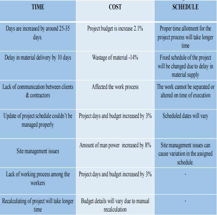 This passage highlights the challenges faced in a constructionprojectrelatedtotime,cost,schedule,safety, andmanagement.Thedelayinmaterialdeliveryandpoor communicationbetweenclientsandcontractorsresultedin a significant increase in the project timeline and budget. Safetymeasureswerenotupdatedregularly,andindividual safety issues could not be analyzed correctly. Site management issues led to variations in the assigned schedule, and a lack of working process among workers caused further delays. Recalculating the project is a timeconsumingprocess,andthebudgetdetailscanvarydueto manual recalculation. The passage emphasizes the importance of proper time allotment, effective communication,andefficientsitemanagementtocompletea constructionprojectsuccessfullywithinthesetbudgetand schedule.