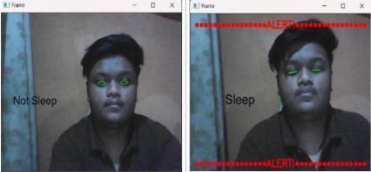 IntheSecondtypeofexperiment,livevideoiscapturedwith thehelpofawebcamassociatedwithalaptop.anaudiofileis beingplayedintheformofanalarmtowakeupthedriver when drowsinessisdetected.Thismethodisuser-friendly andonlyneedsawebcamnoneedforanyhardware.Figure 9showstheresultofthesecondtypeofexperiment