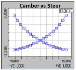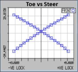 SteeringThemaneuveringcharacteristicsofthevehicleis directlygovernedbythesteeringsystem,whichalsoplaysa major role in primary functioning of the vehicle. After analyzing and optimizing years of technical data, a noteworthybenchmarkinthesteeringsystemisachieved.A rackandpinionhaving1turnlocktolockisused.Therack and pinion are self-designed and has been analyzed with manyiterations.Ackermangeometryofsteeringmechanism is incorporated as it gives one of the best results for all terrain purpose.Multibodydynamics ofsteeringsystemis performedandgottheresultsintermsofthesegraphs.Both leftandrightturnscontributeinalimitedanda minimum changeincamberandtoe,mostofwhichisaresultofbump steer. Care has been taken to keep the steering effort for vehicle low,sothatthedrivermustnotneedtobeworking hardforturningthevehicle.Theturningradiusofvehicleis 1.5m,wellsuitedforagoodcommandoverthevehicle.