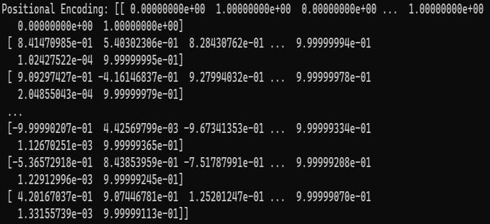 Positional encodingisusedtoeffectivelyreflectsequential information.Thepositionalencodingmethodemployscosine andsinefunctionstocalculatethepositionofthewordinthe sentence.Resultofpositionalencodingofgiventextisshown inFigure4