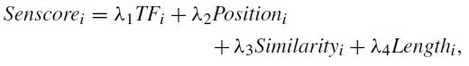 The vectors of each sentence and article title are built basedonthetermfrequencyweightingschema.Therefore, thefinalsentencescoreiscalculatedasfollows: