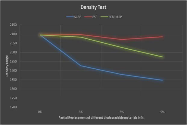 Accordingtothedensitytest,theweightsoftheblocksare reducedby3-4%whencomparedtotraditionalblocks,with all other blocks having biodegradable components substitutedtosomeextent.