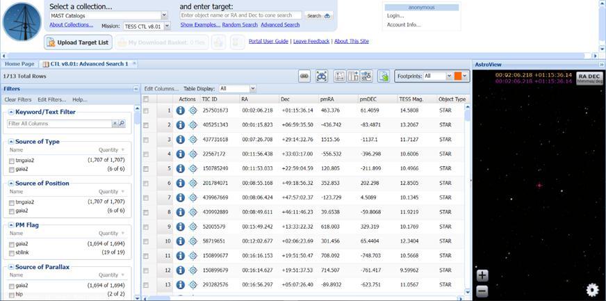 The Mikulski Archive for Space Telescopes (MAST), generously supported by NASA, serves as a comprehensive repository for astronomical data sourced from various space-based telescopes such as the Hubble Space Telescope (HST), the Kepler and K2 missions, and the Transiting Exoplanet Survey Satellite (TESS). Housing anextensivecollectionencompassingover9millionstars, ourresearchnecessitatedtheapplicationofspecificfilters tonarrowdownthepoolofcandidatestars.[15] Ourfocus centeredonthe TESSCTLv8.01missionwithin the MAST catalogs, with additional emphasis placed on red dwarf stars renowned for hosting exoplanets with rapid orbits. To identify these stars, we implemented filters based on temperature and distance criteria. Given that red dwarf stars typically exhibit temperatures ranging from 2000 to 3500 Kelvin, we employed this temperature filter accordingly. Additionally, we restricted the selection to starswithinadistanceof12to24Parsecs.