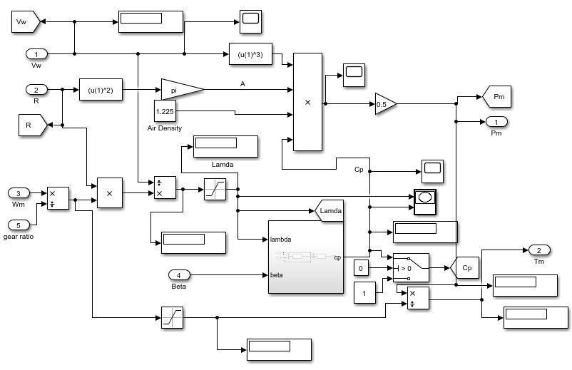 Where ρ is the air density (kg/m3), is the wind speed (m/s),(A=πR²)issweptareacoveredbytherotor(m2), andCpisthepowercoefficientwhichisafunctionofboth tip speed ratio, λ, and blade pitch angle β (deg). The efficiencyofthewindturbineblades'powercoefficientCp canbeanalyticallyestimatedas[16]: