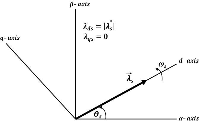 Adecoupledcontroloftheactiveandreactivepowerbythe stator flux orientation to obtain separate control of the powersgeneratedbythewindsystem.ControllingthedqaxesrotorcurrentsoftheDFIGwillalsoallowforcontrolof thestatorreactivepowerandelectromagnetictorque.The statorfieldrevolvescontinuouslyatsynchronousspeed.The statorfluxvector,whichdepictsthephaseandamplitudeof theflux,servesasthefieldsymbol.Selectingthetwo-phase dqandplacingthestatorfluxvectoronthed-axiswillallow it to write the two-phase dq related to the rotating stator field.