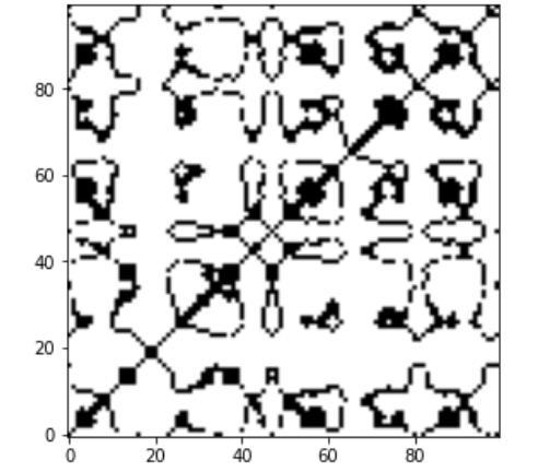 ��(����,����)=1,if the value of an n-dimensional feature sequencesis so very close to where the ���� and ����patterns are spatially located; else, 0 is displayed. Black and white dotsareusedintheRPimagetorepresentthegraph'stime series.
