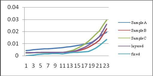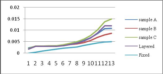 Fromchart08itisobservedthatdeformationinsoilforBhuj ismaximuminG+10buildingwhichis0.067mforsampleB. SampleBhavemoredeformationinallbuilding.Astheheight of building goes down deformations are increases. For all buildingsampleCisshowslessdeformationtheanyother sample.Deformationinlayeredsoilisnearlyequaltosample A.