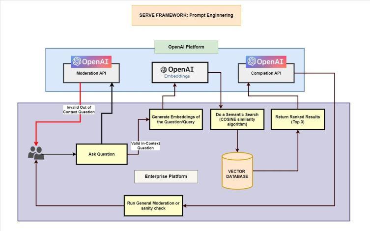 The Serve framework is where the end users would be able to query against the AI based knowledge repository we built during the pre-processing stage. The high level designstepsaregivenbelow-