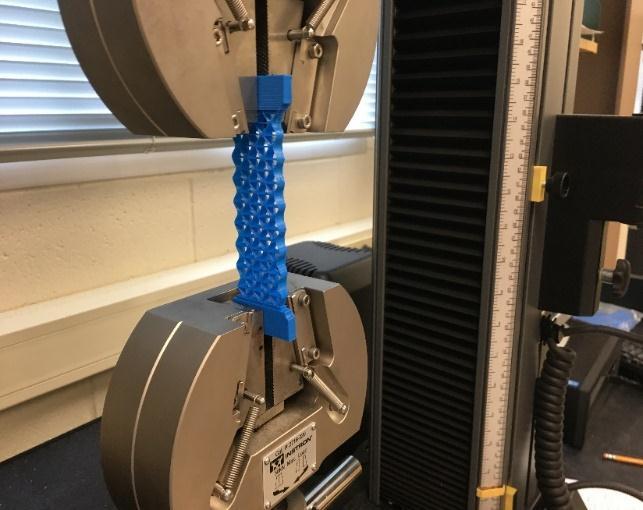 Matlabwasusedtodrawthe sinecurvesintheunitcellsand TinkerCad3Dsoftwarewasappliedtodesignthe structuresin 3D modeling. MakerBot Replicator Z18 3D printer was implemented to fabricate the structures with PLA filament. The mechanical and physical properties of the PLA filament (Polylactic Acid) are listed in Table 1. The printed specimens, structures (a), (b), and (c), are shown in Fig.2 Instron 5969 was used to measure the Poisson’s ratio of the structures displayedinFig.3.Whenbendingoutofplane,thesampleofthestructure(a)showedsynclasticcurvatureshape