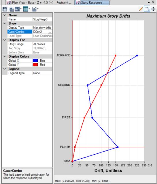 Storey Drift:thedriftisdefinedasratioofdisplacement of two consecutive floors to height. The maximum permissible drift is limited to 0.004 times the height of the storey. It is very important term used for research purpose an earthquake engineering. The storey drift in any storey due to maximum specified design lateral force,withpartialloadfactorof1.