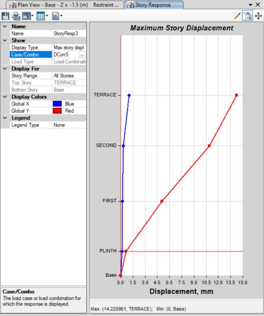 Storey Displacement: it is defined as the displacement of the storey with respect to the base of the structure. The maximum permissible displacement is limited to height of the building by 500(H/500) and it is representedintermof‘mm’.