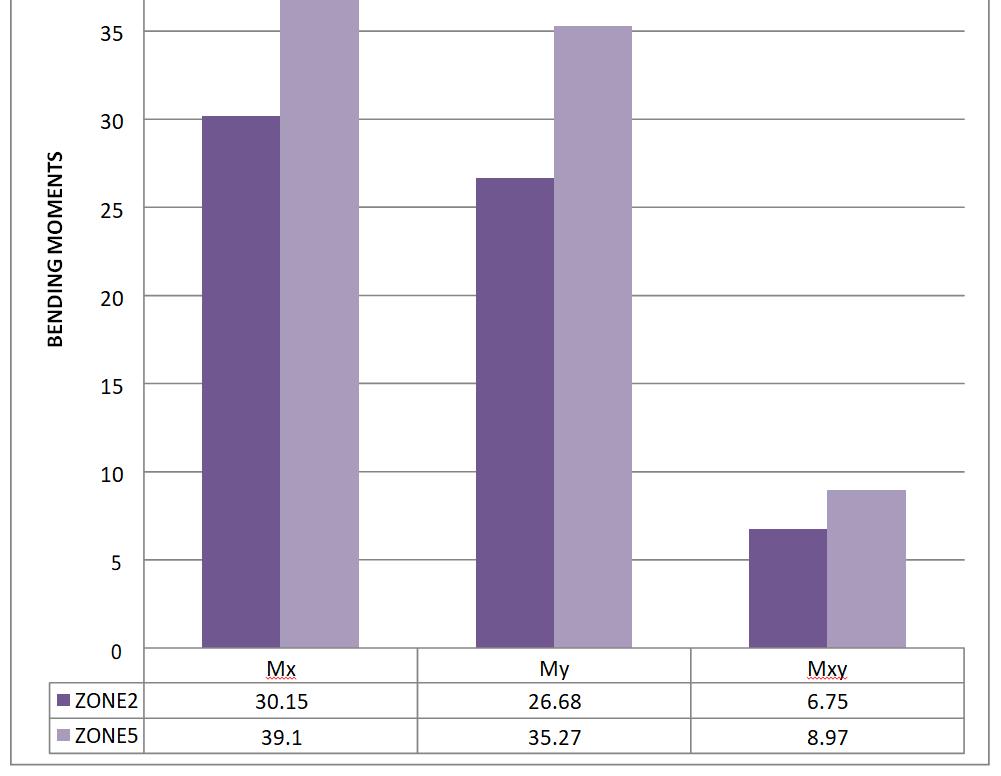 5. Thebendingmomentinxandxyhasnovariationinzone2andzone5andbendingmomentinydirectionin bayframeincreasesdynamicallyinzone5thaninzone2