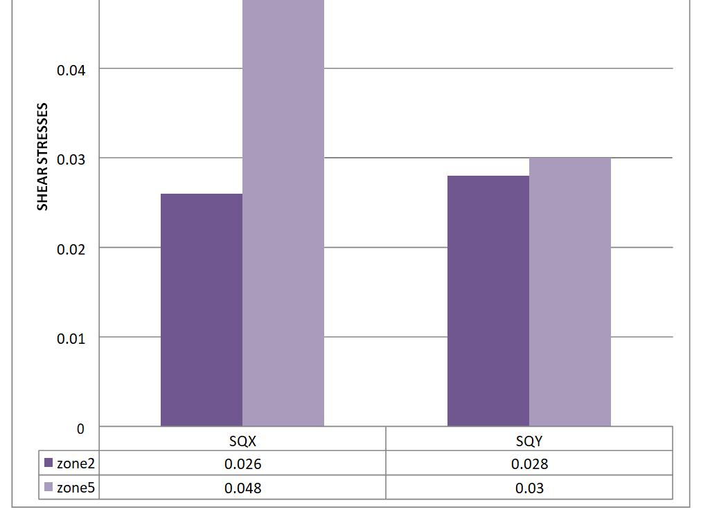Theshearstressesinxandydirectioninbayframeincreasesdynamicallyinzone5thaninzone2