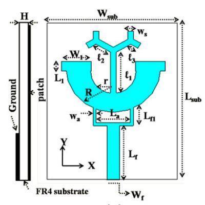 Figure 2 depicts the geometry of the suggested antenna, which is implemented on a FR4 substrate with a 1.6mmthickness.Thesubstrate'sdimensionsare33.3mm x24.4mm(LsubxWsub).Here,alargecircleradiusof9.5 mm is chosen because it results in a lower resonance frequency of 4 GHz with the successful coupling in the higherfrequencyrange.Sincealargeportionoftheelectric currentsarecenteredattherestrictedareaoftheradiator, anannularshapecanreducetheoverallsizeoftheprinted UWB antenna. In addition, the primary patch is electromagneticallyconnectedtoacircular parasiticpatch that in the substrate backed and employed as an auxiliary resonator.