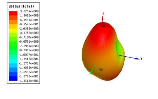 Afluctuationinanantenna'spowerasafunction ofthedirectionitisfacingawayfromtheantennaisknown as a radiation pattern. In the far-field of the antenna, this power variation as a function of the arrival angle is seen. Figure 8 depicts the radiation pattern of a dual-bandCPW fedantennadevelopedinHFSSthatcorrespondstoFigure 3.