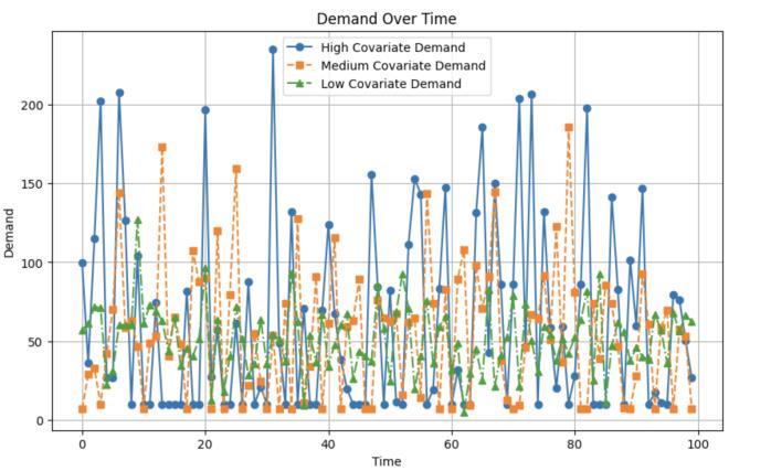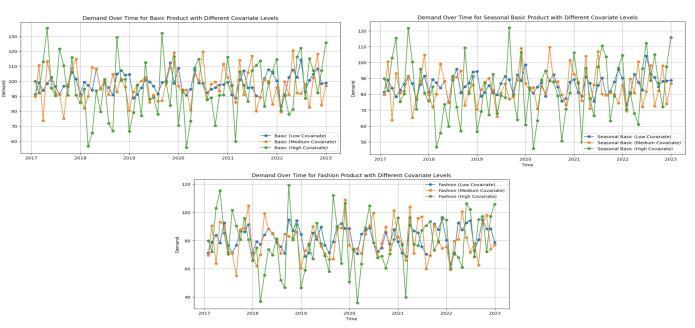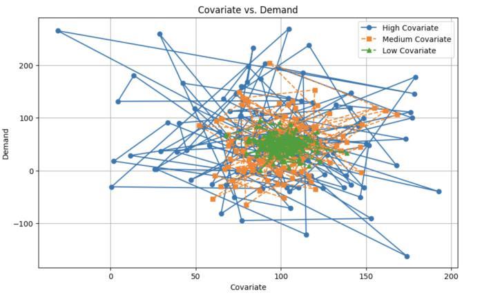 the introduction and growth phases typically have higher demand than those in the maturityand decline phases do. This discrepancy is primarily attributed to how product offeringscontributetothemeasurementofvariation(MoV) at eachlifecyclestage.Newer productsbring greater MoV, whiledemandtapersforagingproductsasMoVdecreases. The variation of the demand with different covariates is demonstratedinFig2andFig3.