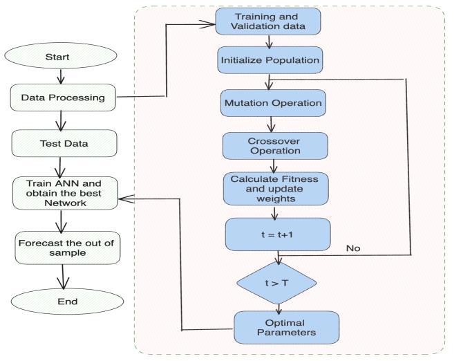 TheDeepANNmodelisoptimizedusingaGeneticAlgorithm, which fine-tunes the number of nodes, dropout rate, and other topology parameters by mimicking the process of natural selection. The evaluation of these models utilizes various accuracy metrics like Mean Absolute Error (MAE), Mean Absolute Percentage Error (MAPE), and Root Mean SquareError(RMSE),whicharecalculatedonavalidationset to ensure the model's accuracy. Statistical testing is then employed to determine the significance of accuracy improvements.