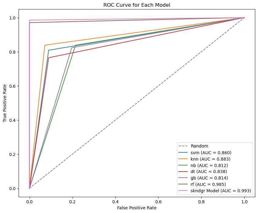 In our code, hyperparameter tuning is performed for four differentmachinelearningmodels SupportVectorMachine (SVM), K-Nearest Neighbors (KNN), Decision Tree, and Gradient Boosting on validation data using the GridSearchCV method. For each model, a grid of hyperparametersisspecified,andthemodelistrainedwith variouscombinationsofthesehyperparametersusingcrossvalidation (cv=5). The hyperparameters with the best performance are determined based on the cross-validated results,andtherespectivemodelsarere-instantiatedwith these optimal hyperparameters. This iterative process ensuresthatthemodelsarefine-tunedtoachievethebest performanceonthevalidationset,enhancingtheirpredictive capabilitiesforsubsequentevaluationonunseendata.These fine tune models later served as the base of our proposed SKNDGRmodel.Fine-tuninghyperparametersinNaiveBayes islimitedbyitsinherentsimplicityandstrongassumptionof featureindependence,withfewparametersandrobustness being key factors. Similarly, hyperparameter tuning in Random Forest may not yield substantial gains due to its built-inrobustnessagainstoverfitting,aggregationofdiverse tree predictions, and the algorithm's responsiveness to default settings. Our implementation abstains from finetuning both Naive Bayes and Random Forest, as their performance relies more on inherent characteristics and quality of features than intricate parameter adjustments, avoidingunnecessarycomputationalexpenses.