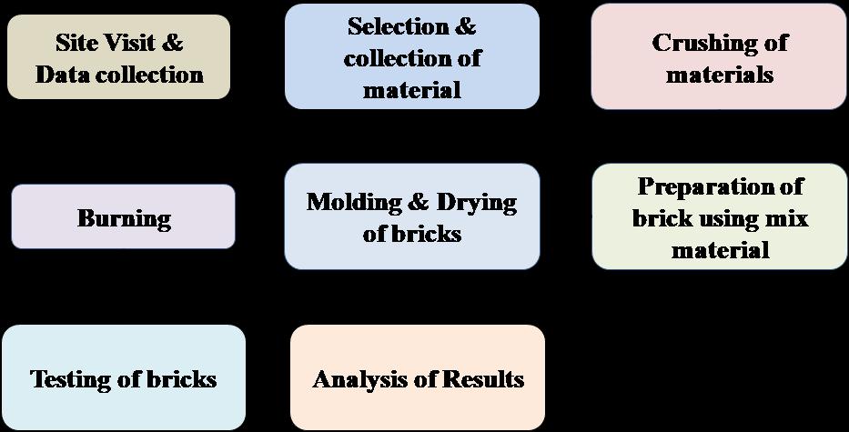 This section outlines the comprehensive methodology adoptedinthisresearchforthedevelopmentandtestingof lightweightbricksusingbiomedicalwasteandcement.The methodology is systematically structured into several key stages,eachcriticaltoachievingthedesiredoutcomes.The Fig1.Showstheproposedmethodologyframeworkforthe developmentoflightweightbrickusingbiomedicalwaste.