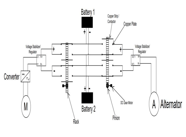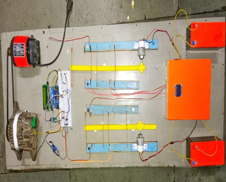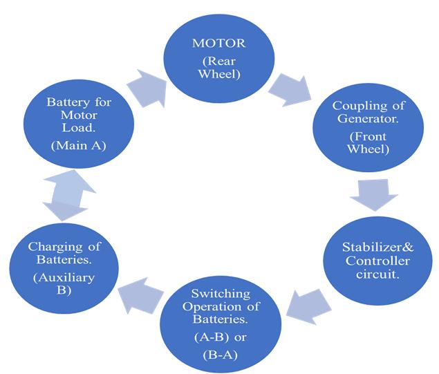 Tochargethecomponentsinvehicleandauxiliarybattery thepowerisgeneratedbythealternatorwhichiscoupledon theshaftofthevehicle.Duetothis,thevehiclenotrequireto chargeonthechargingstationsandsothecharginghoursof vehicle is or reduces completely /eliminated and vehicle shouldcovermoreorunlimiteddistances. We have made prototype of this while considering all the factors and specifications according to our projects. The specification, calculation and observation should change according to the project. The controller we are using in ArduinoUNOboard,forindustrialapplicationsthecontroller shouldbechanged.