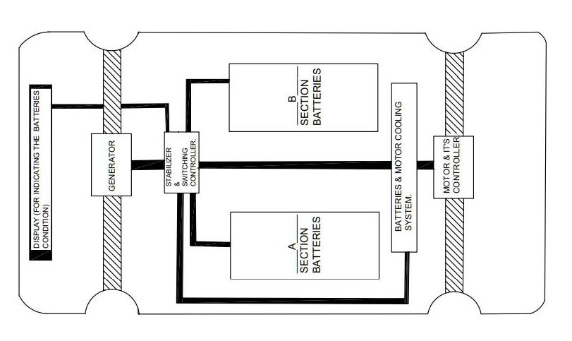 Inthebatterypart,thebatteriesaredividedintotwo sections, i.e., A and B. One of these batteries is the main battery,andtheotherisanauxiliarybattery.Themotorload should be carried by the main battery, and the charging shouldbedoneontheauxiliarybattery.Afterfulldischarge ofthemainbattery,themotorloadissharedbytheauxiliary battery,andatthistimethemainbatteryisswitchedtoin chargingconditionbyusingcontroller.