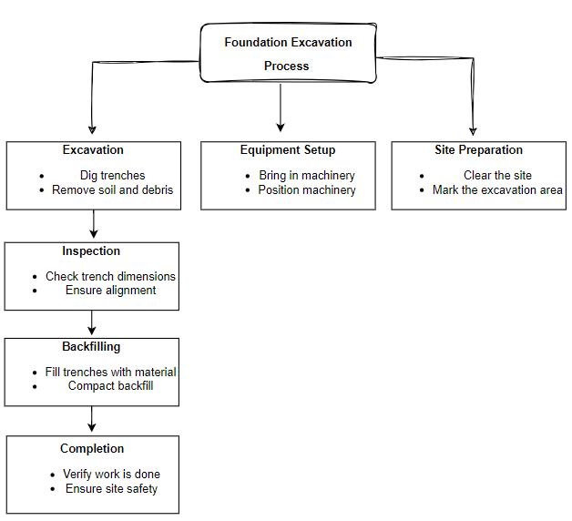 TheWorkBreakdownStructure(WBS)isvitalinconstruction project management, especially for taskslike foundation excavation(Kumar,2020).Itbreaksdowntheexcavationprocessintosmallertasks,ensuringclarity and organization, and enabling efficient resourceallocation(PMI,2021) Additionally,theWBSaidsintimemanagement by facilitating realistic scheduling (Danny, 2022) while also playing a crucial role in risk management by identifying critical tasks (Shahid Iqbal, Jan, 2015,). Furthermore, it enhances cost control through accurate estimation and tracking (Turner, 2013), and serves as a communication tool, fostering collaboration among stakeholders (Yvonne Valerie Leonard Doudilim,Dec,2021).