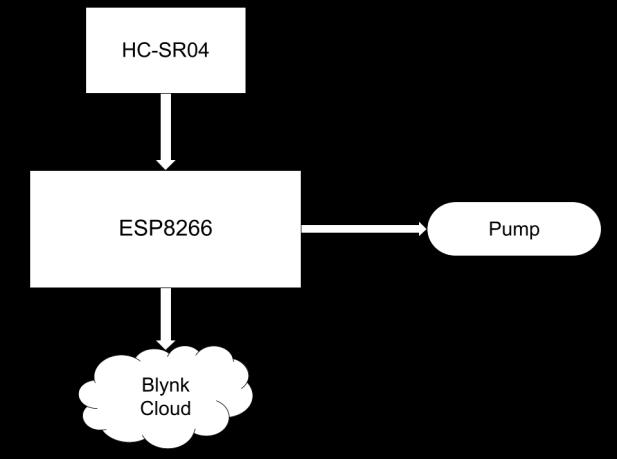 There is a tank of nutrient solution. A water pump is connected to it, so when the water pump turns on, it supplies a nutrient solution, not water. There is a long aquarium where all the plants are placed. The plants are above the aquarium but their roots are sinked in the nutrient solution. When those plants completely take all thesolution,thewaterpumpwillautomaticallysupplythe solution from the tank. The height of the solution level is alwayssenttotheBlynkcloud.