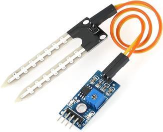 Itdetectsandmeasureswaterinsoil.Ithas4pins,VCCfor positivepowersupply,GNDforgroundconnection,ACfor analog data output, DC for digital data output. I use an analogdataoutputpinheretomeasurewaterinsoil.