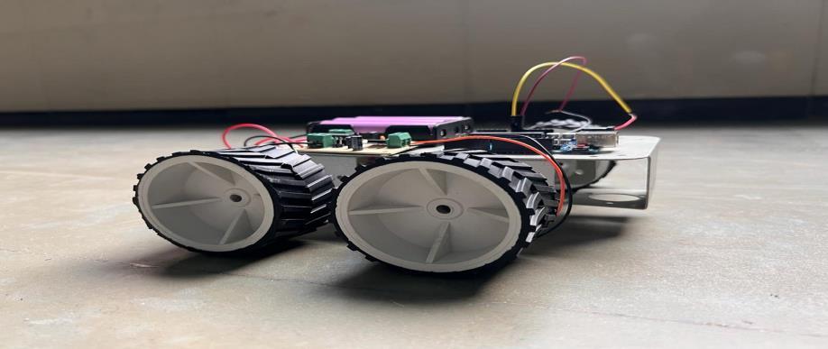 Abovefigdisplaystheprototypeoftheworkwhichconsists of necessary sensors, microcontroller, DC motors and batteries.Thissizeoftheprototypeaidsinefficienthandling andbetterunderstandingofthework