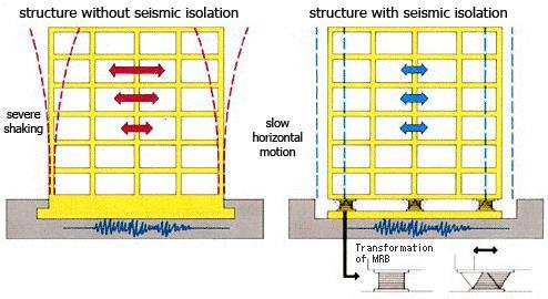 While the goal of conventional seismic design is to build structures that can endure strong earthquake shaking without collapsing, certain structural elements and nonstructural elements (such glass facades) may sustain damage.Therearetwofundamentalmethodsemployedto protect structures against the damaging effects of earthquakes. These are devices for base isolation and seismicdamping.Removingthestructurefromthegroundin awaythatreduces,ifnottotallyeradicatesthepropagation