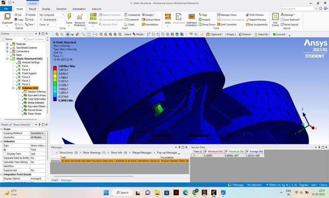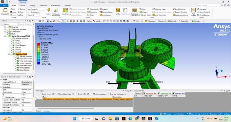 stress concentration and regions experiencing significant loading. The high-stress regions could potentially be susceptible to failure or fatigue over time. The following figure shows the normal stress analysis of the machine which had been achieved usingANSYSsoftware