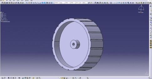 ThedesignofthewheelwasmadeusingCATIAV5.It was made using proper dimensions which then was usedformanufacturingpurposes.Figure7showsthe CAD Model of the wheel. The wheel was made using ASA - Acrylonitrile Styrene Acrylate which helps in cutting down the weight while keeping the strength and load capacity of the wheel same. Figure 8 shows theactualmanufacturingofthewheel.