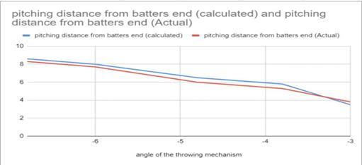 2. With the change in the angle of the throwing mechanism different pitching points were obtained. When the angle was increased the pitchingpointwas goingawayfrom themachine andviceversa.