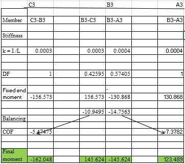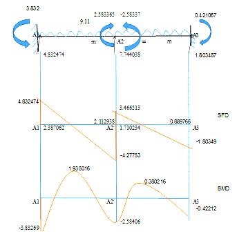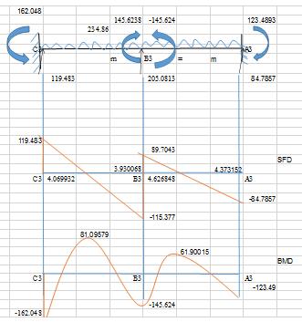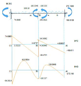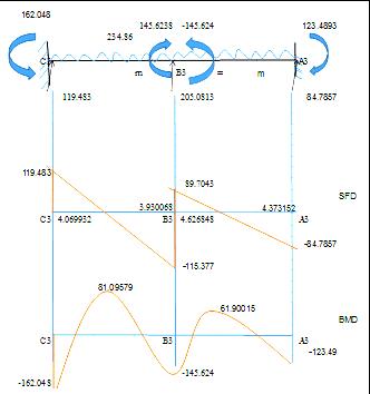 Table –26: Shearforceandbendingmomentdiagramfor beam C3-B3-A3