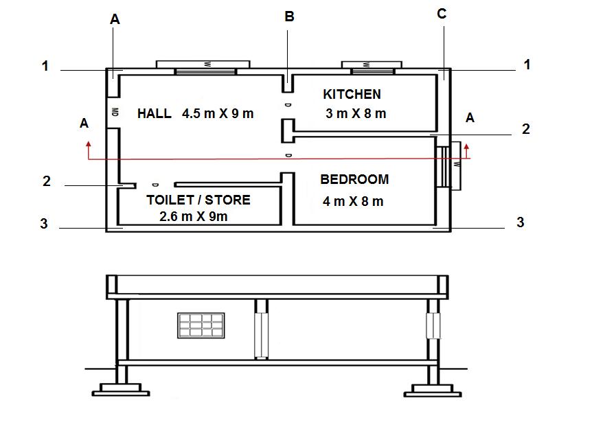 2showstheplanviewandsectionAAviewofa singlestoreyresidentialbuilding