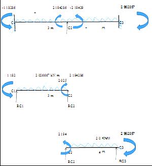 •Drawafree-bodydiagramofeachspanofthesupplied beam,displayingtheloadsandmomentsproducedusing themomentdistributionmethodatthejoints.