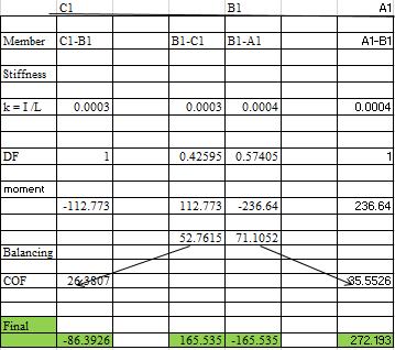 Table –24: SupportreactionforbeamC1-B1-A1