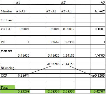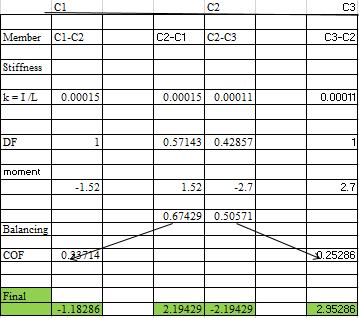 • Calculate and distribute the unbalanced moment at eachjointtotheendsofmembersconnectedatthatjoint.