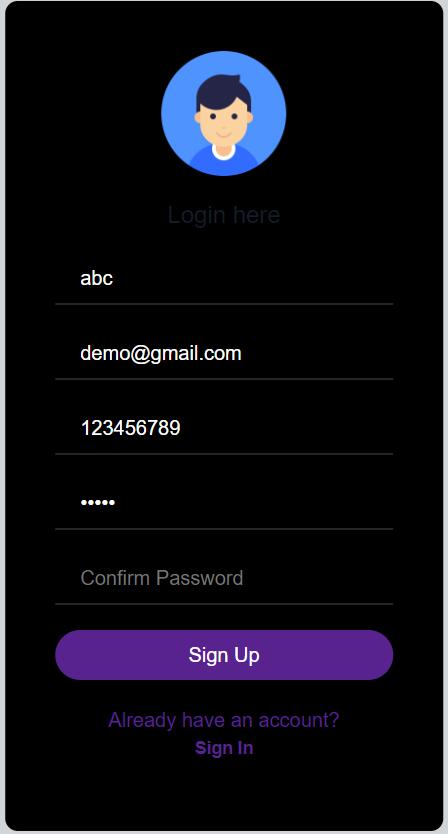 Confirm Password: Field for the user to re-enter their passwordforconfirmation.
