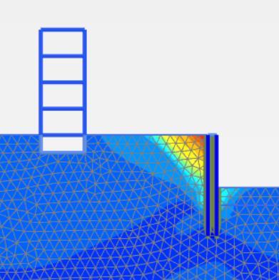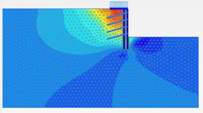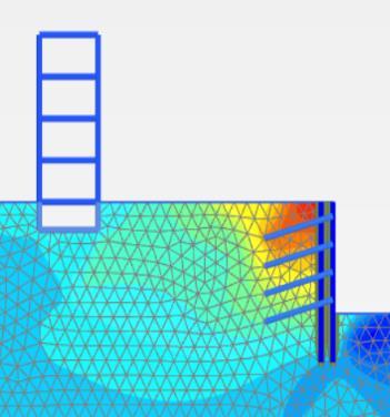 PLAXIS version 23 is used for the simulation of 8m deep vertical cut in soil using staged construction of composite systemandanalyzingtheresponseofmicropileandnailing, understaticandseismiccondition.Numericalmodellingis carriedouttakingtheplanestrainstateofstresses.The15nodetriangularelementwithfinermeshdensityareusedfor thefiniteelementdiscretization.Thein-situsoilissimulated