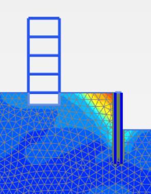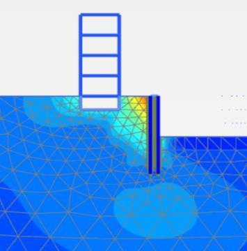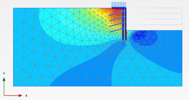 Fromtheanalysisresultsitisseenthatthesystemisnotsafe fordynamicanalysisaswell.Fromthefigure16to20itseen thatwhenthedynamicloadsareappliedthecompletesoil body displaces horizontally along with the double row