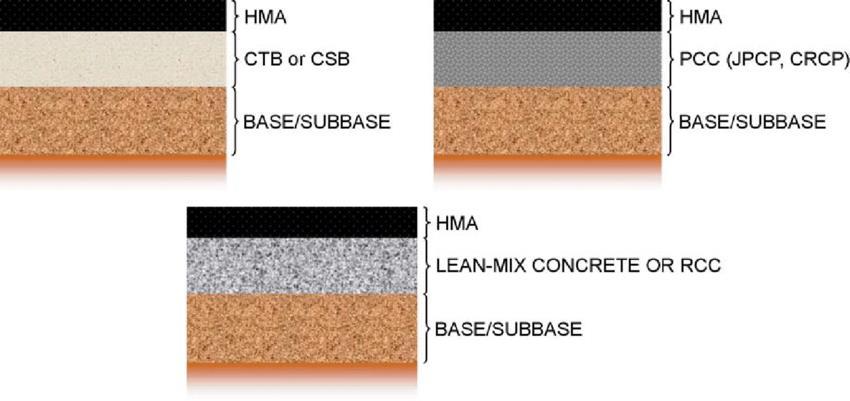 Compositepavementsblendfeaturesfrombothflexibleand rigid pavement designs, often incorporating a flexible